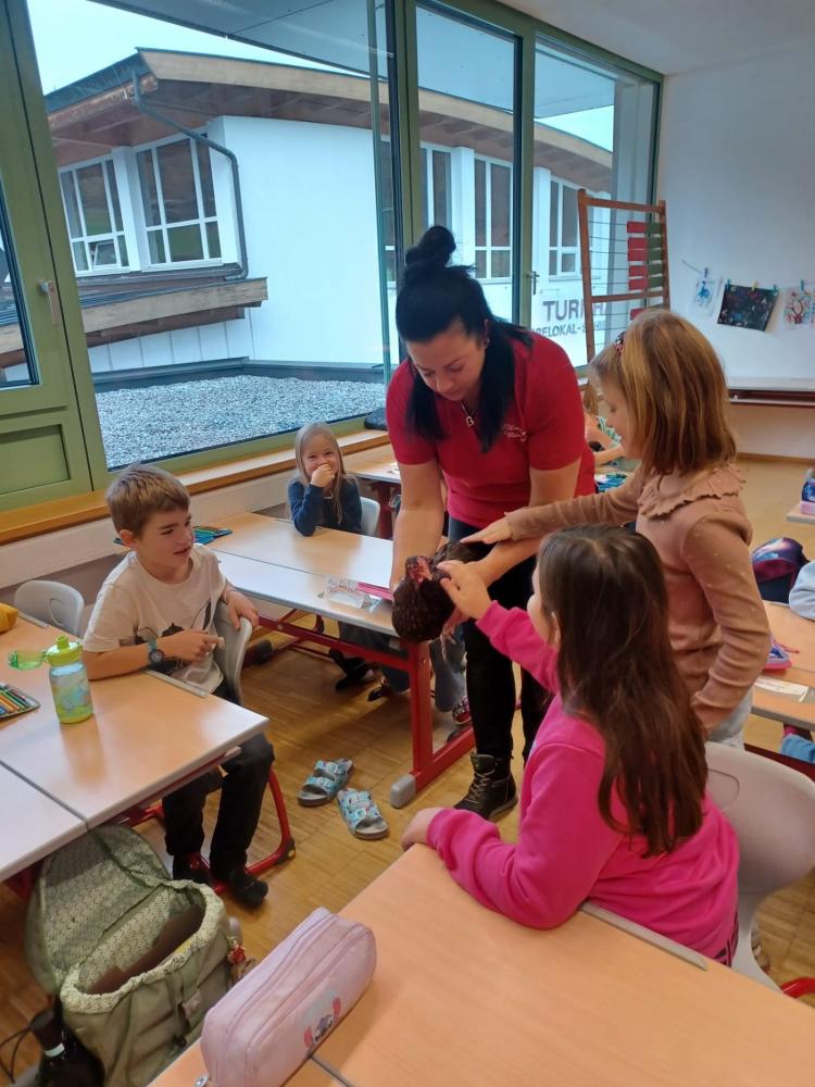 ...und erzählten Spannendes vom Leben am Bauernhof. Wir erfuhren, wie die Milch abgestellt wird, von den g‘schmackigen Äpfeln, die bei uns wachsen, und wie gesunde Eier im Hühnerstall gelegt werden.