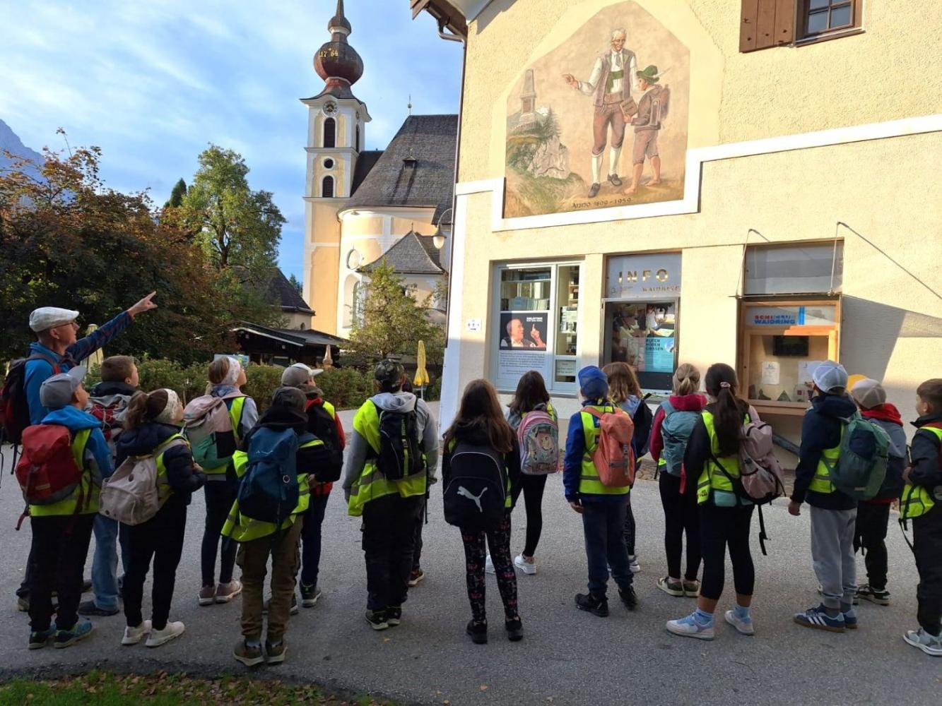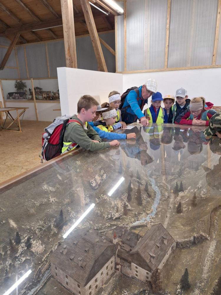 Zuerst bestaunten wir einige historische Gebäude im Ortskern, wie etwa das alte Schulhaus oder den Gasthof "Post". In der "Kramarem" zeigte uns Hans anschließend ein Modell vom Pass Strub aus der Zeit um 1800. Alle staunten darüber, wie die Festungen Tirol und Salzburg damals aussahen.