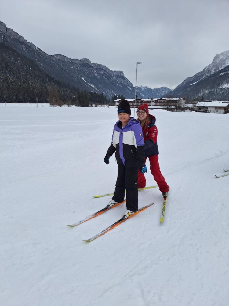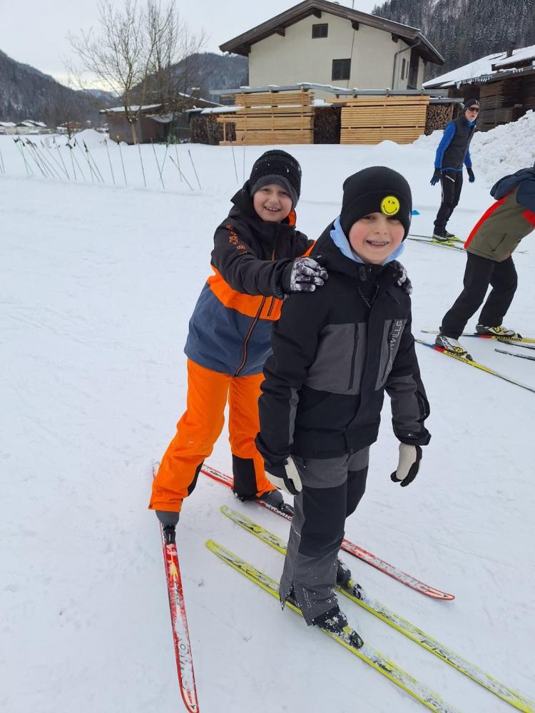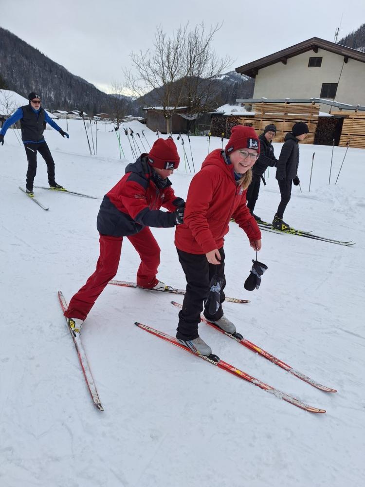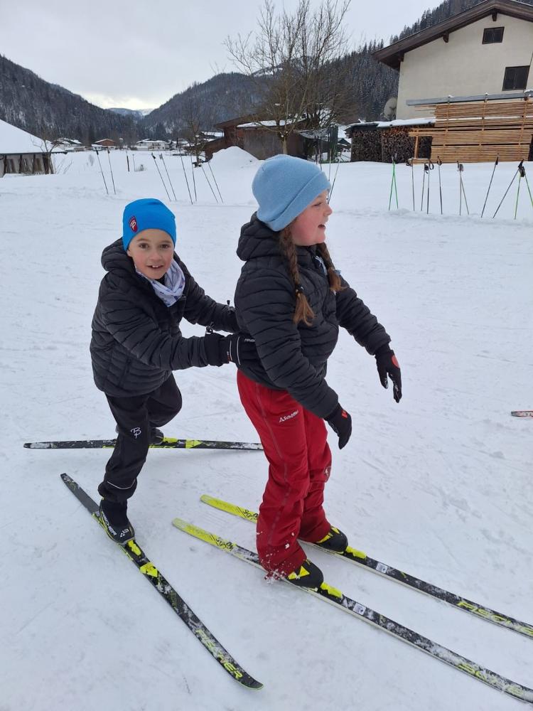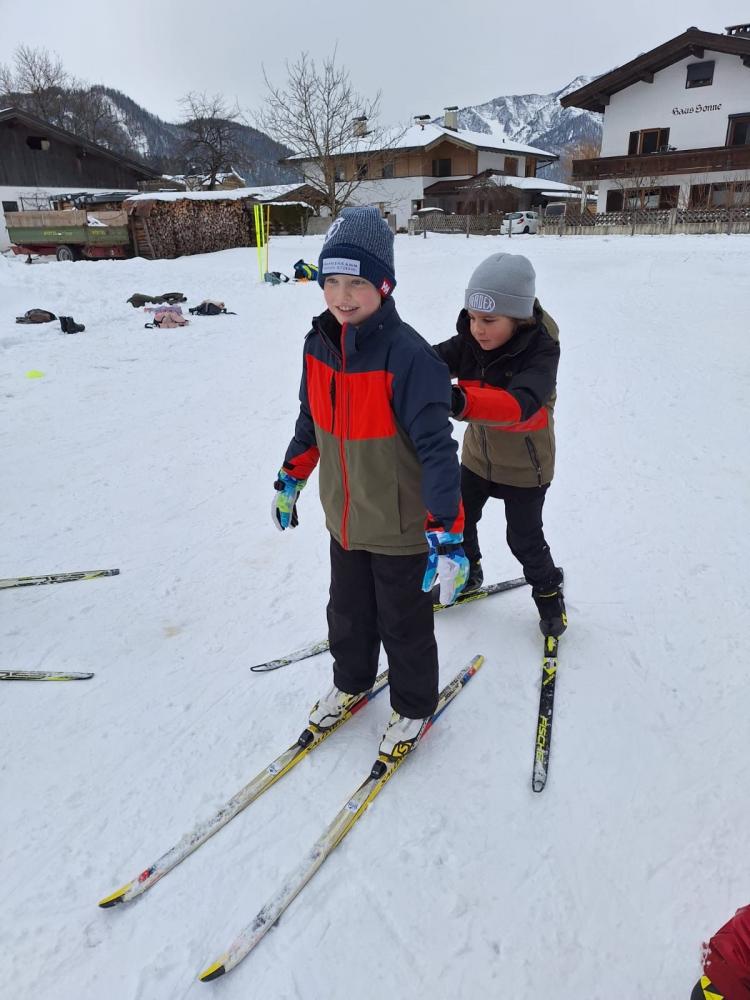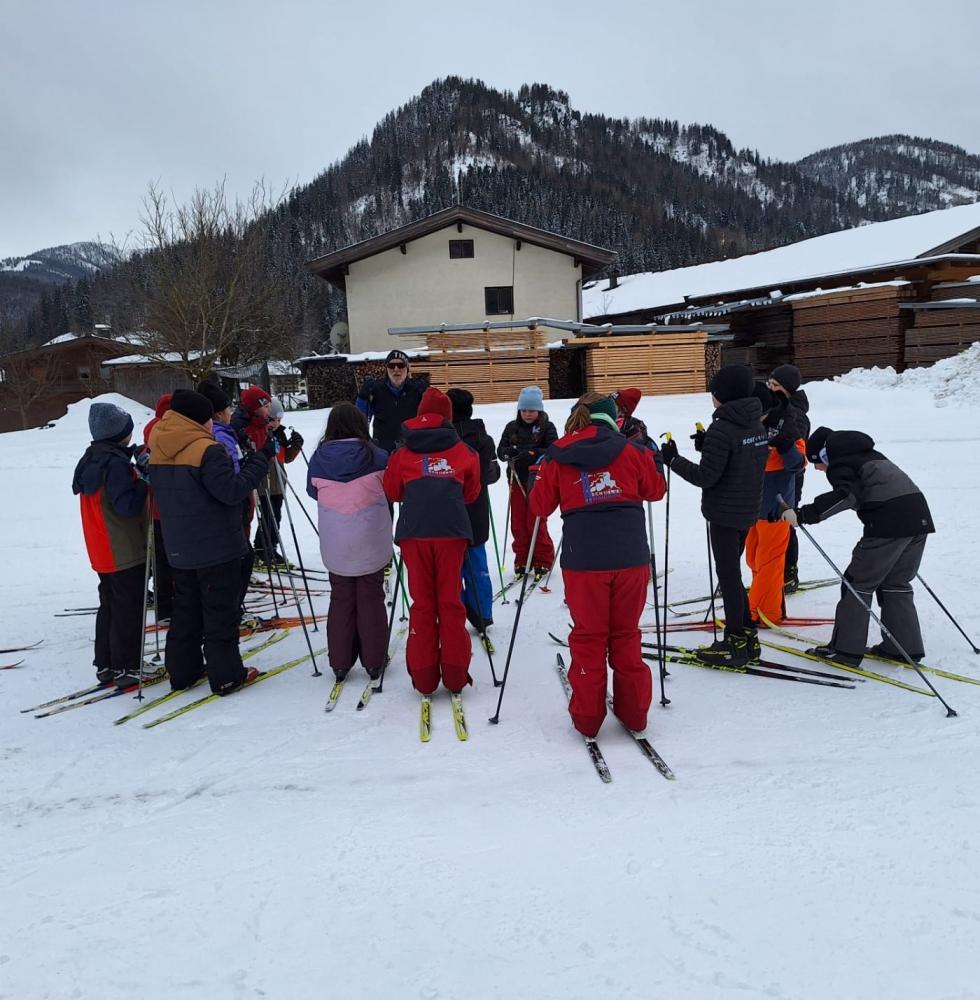 Die Loipe in Schulnähe bietet eine ideale Möglichkeit, die Turnstunde ins Freie zu verlegen. Alle freuten sich auf diese – für viele noch neue – Sportart.