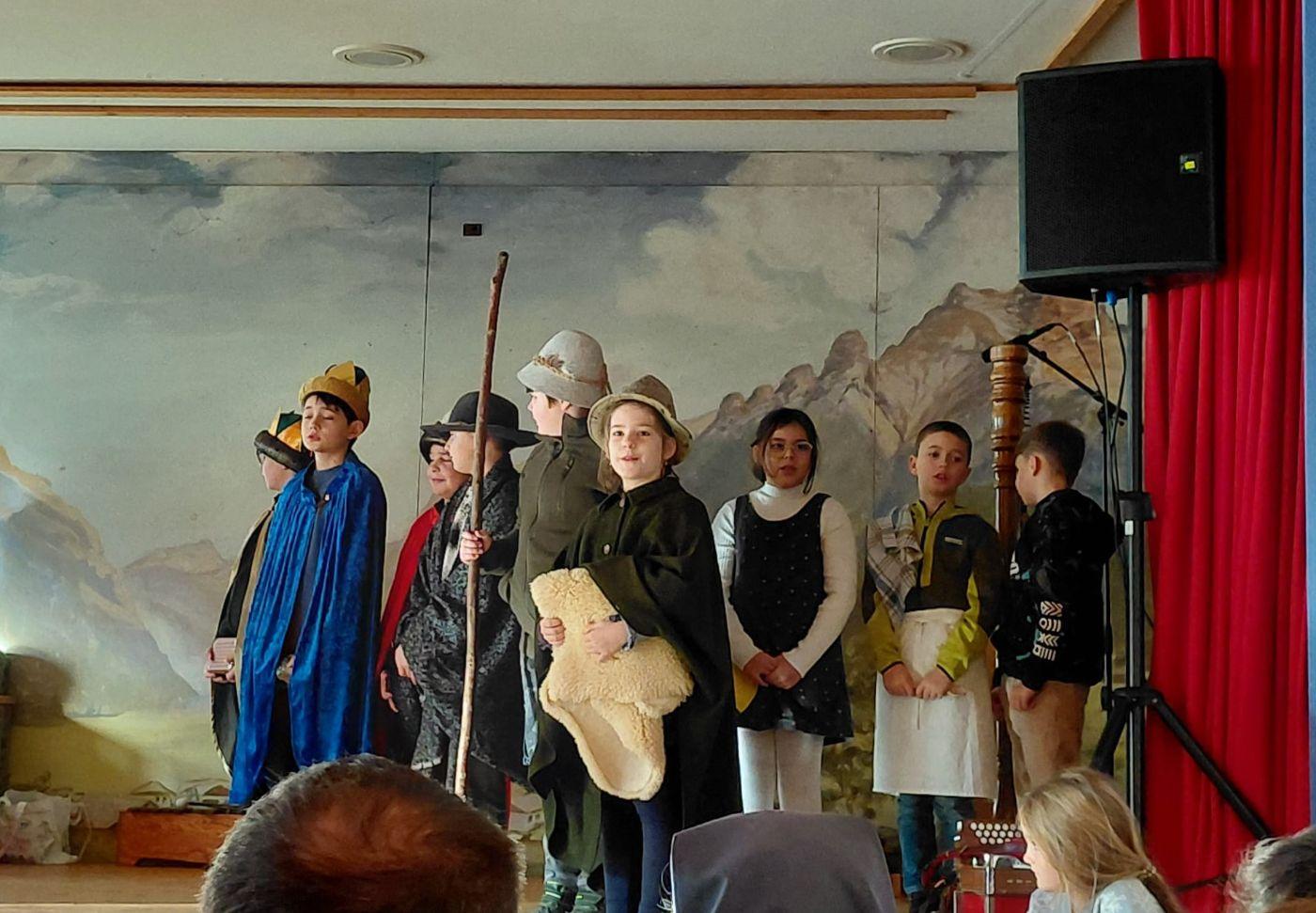 Musikalische Beiträge am Klavier, auf der Ziehharmonika, der Harfe und mit Gitarrenbegleitung sorgten für eine wunderschöne Atmosphäre. Ein besonderer Höhepunkt war das von der vierten Klasse einstudierte Krippenspiel, das mit viel Engagement und Begeisterung aufgeführt wurde.